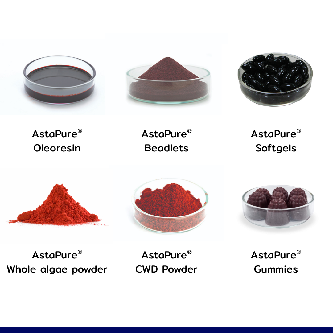 ทั้ง 5 แบรนด์ AstaReal®, AstaPure®, Algamo®, NatAxtin® และ AstaZine® เป็นแหล่งวัตถุดิบ Astaxanthin คุณภาพสูงจาก Haematococcus pluvialis ที่มีจุดเด่นแตกต่างกัน เหมาะกับการเลือกใช้ตามกลุ่มเป้าหมายและแนวคิดของแบรนด์