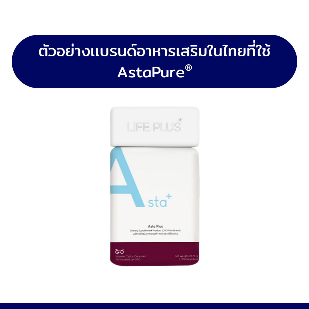 AstaPure® จากบริษัท Algatechnologies จุดเด่นของแบรนด์นี้คือการเพาะเลี้ยงสาหร่าย โดยใช้กระบวนการยั่งยืน ทั้งใช้พลังงานแสงอาทิตย์ ระบบไหลเวียนน้ำแบบรีไซเคิล และให้ผลิตภัณฑ์ Astaxanthin ที่หลากหลายรูปแบบ ครอบคลุมหลายผลิตภัณฑ์