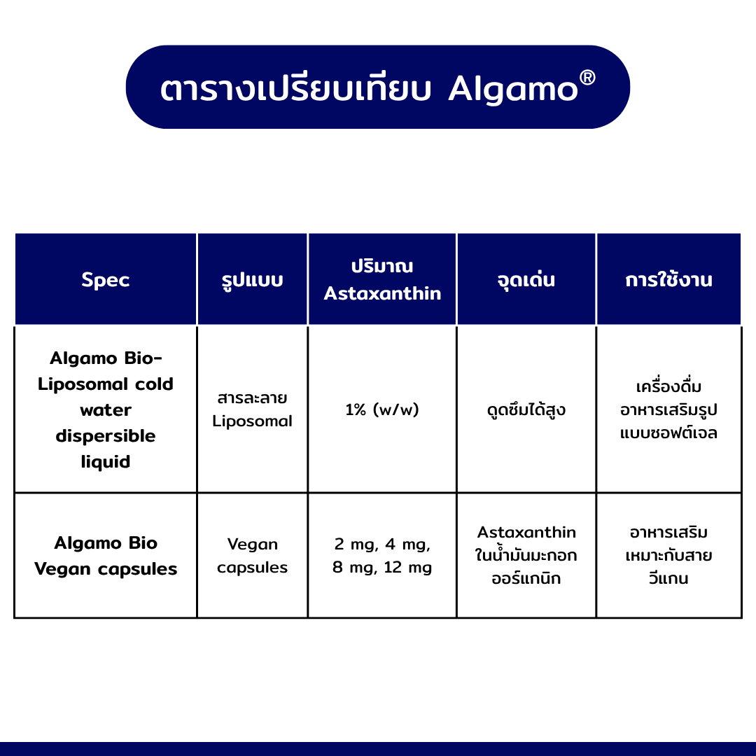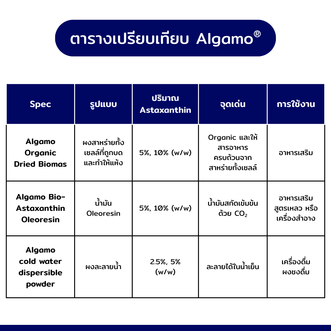 ซึ่ง Spec Astaxanthin แต่ละตัวของ Algamo ก็หลายรูปแบบเช่นกัน