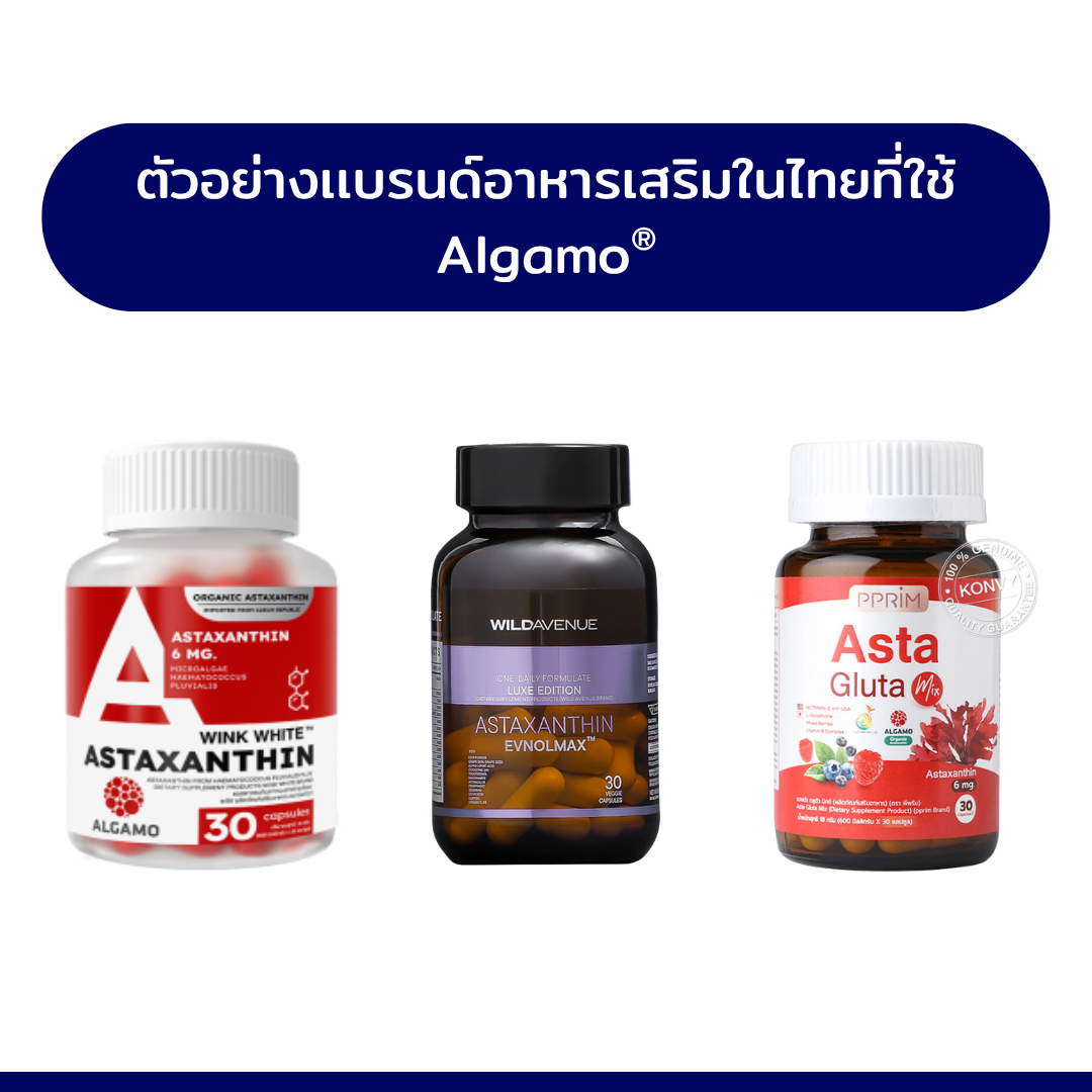 *จากการค้นหาอย่างละเอียดในฐานข้อมูลวิจัยต่างๆ ไม่พบงานวิจัยทางคลินิกที่ระบุชัดเจนว่าใช้วัตถุดิบ astaxanthin จากบริษัท Algamo หรือแบรนด์ Algamo โดยเฉพาะ*