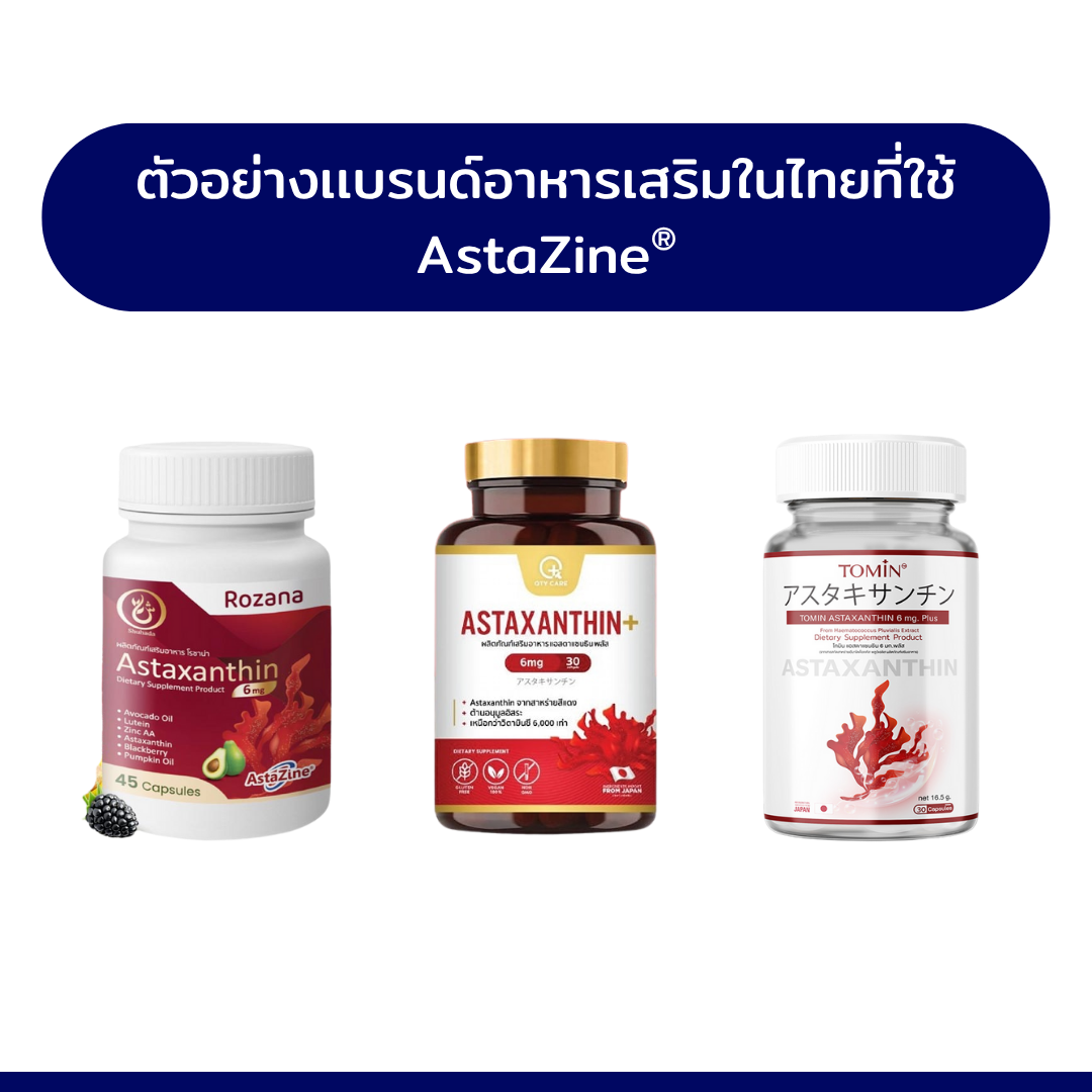 และงานวิจัยว่า Astaxanthin supplement ของ AstaZine สามารถปรับปรุงความคมชัดของสายตาในผู้ที่อายุ 40 ปีขึ้นไปเมื่อทาน 9 มิลลิกรัมต่อวันเป็นเวลา 6 สัปดาห์(อ้างอิง)