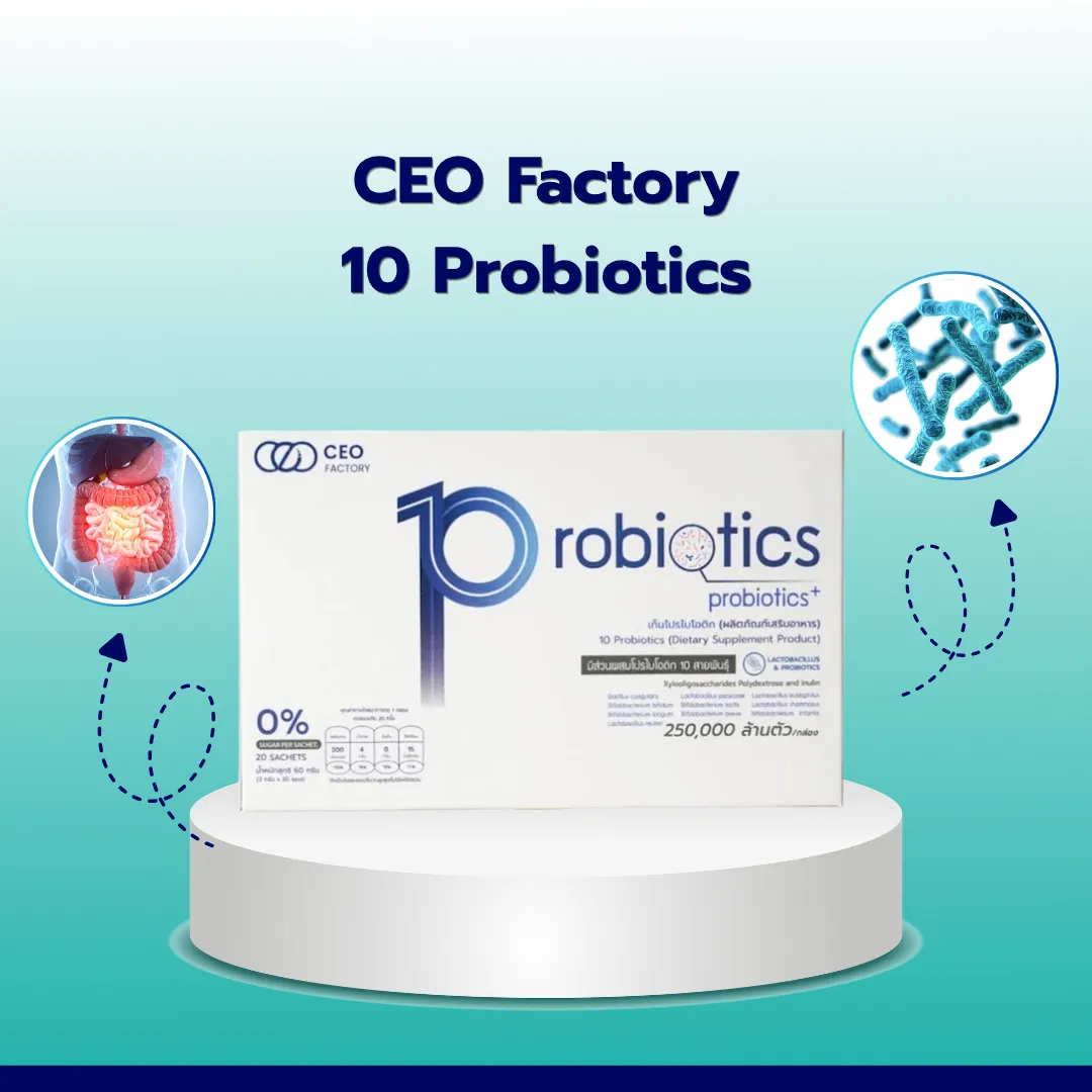 • รวม 10 สายพันธุ์ ช่วยลดท้องอืด ท้องเสีย ปรับสมดุลลำไส้ เสริมภูมิคุ้มกัน และสนับสนุนทั้งระบบย่อยและสุขภาพผิว