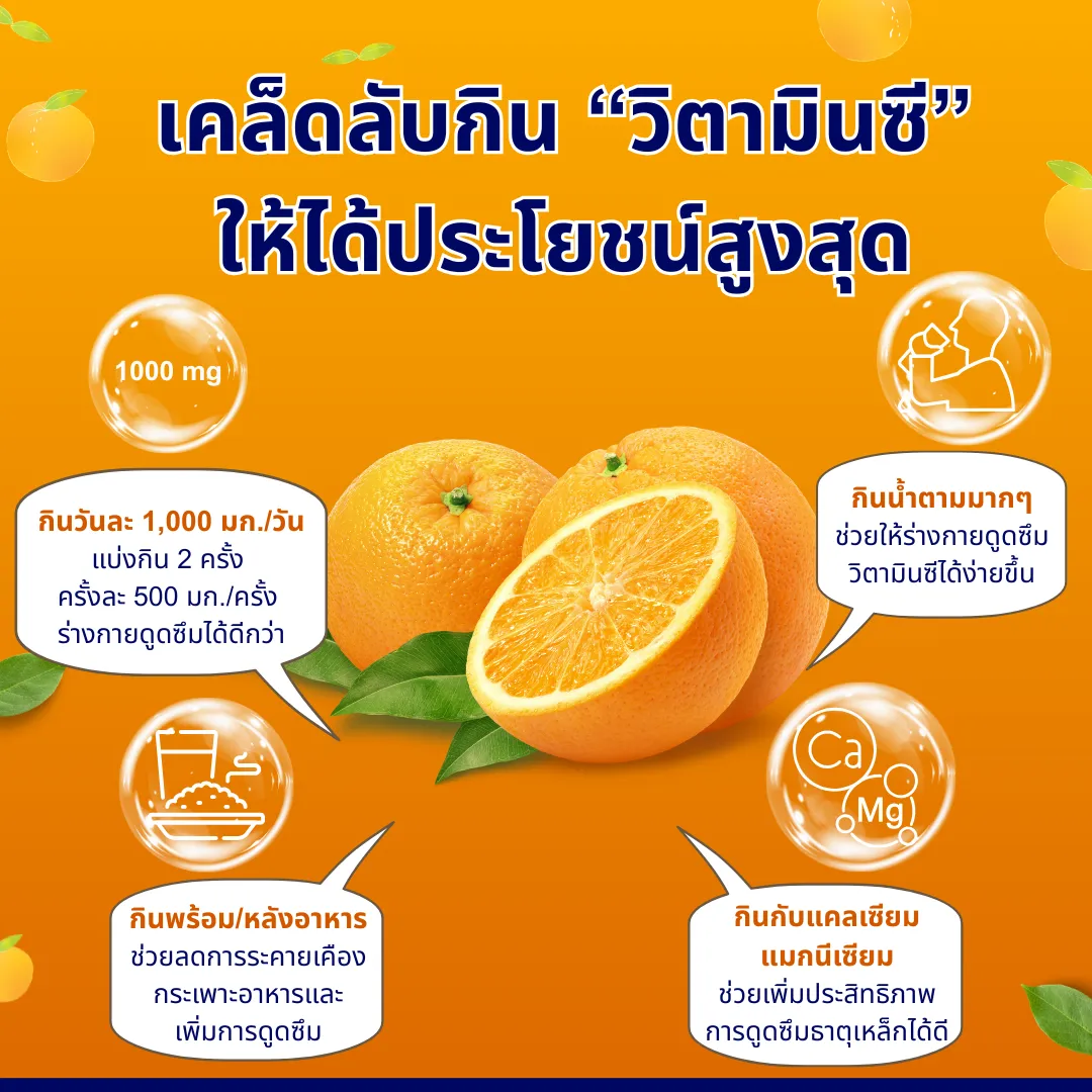 ความสำคัญอยู่ที่การเลือกปริมาณที่เหมาะสม รวมถึงการกินในช่วงเวลาที่ถูกต้อง และการจับคู่กับสารอาหารบางชนิดที่ช่วยเสริมการดูดซึม หากทานได้อย่างถูกวิธี ร่างกายจะสามารถนำวิตามินซีไปใช้ได้อย่างเต็มประสิทธิภาพ ทั้งในเรื่องการเสริมภูมิ ลดอ่อนล้า และดูแลสุขภาพโดยรวมได้ดียิ่งขึ้น