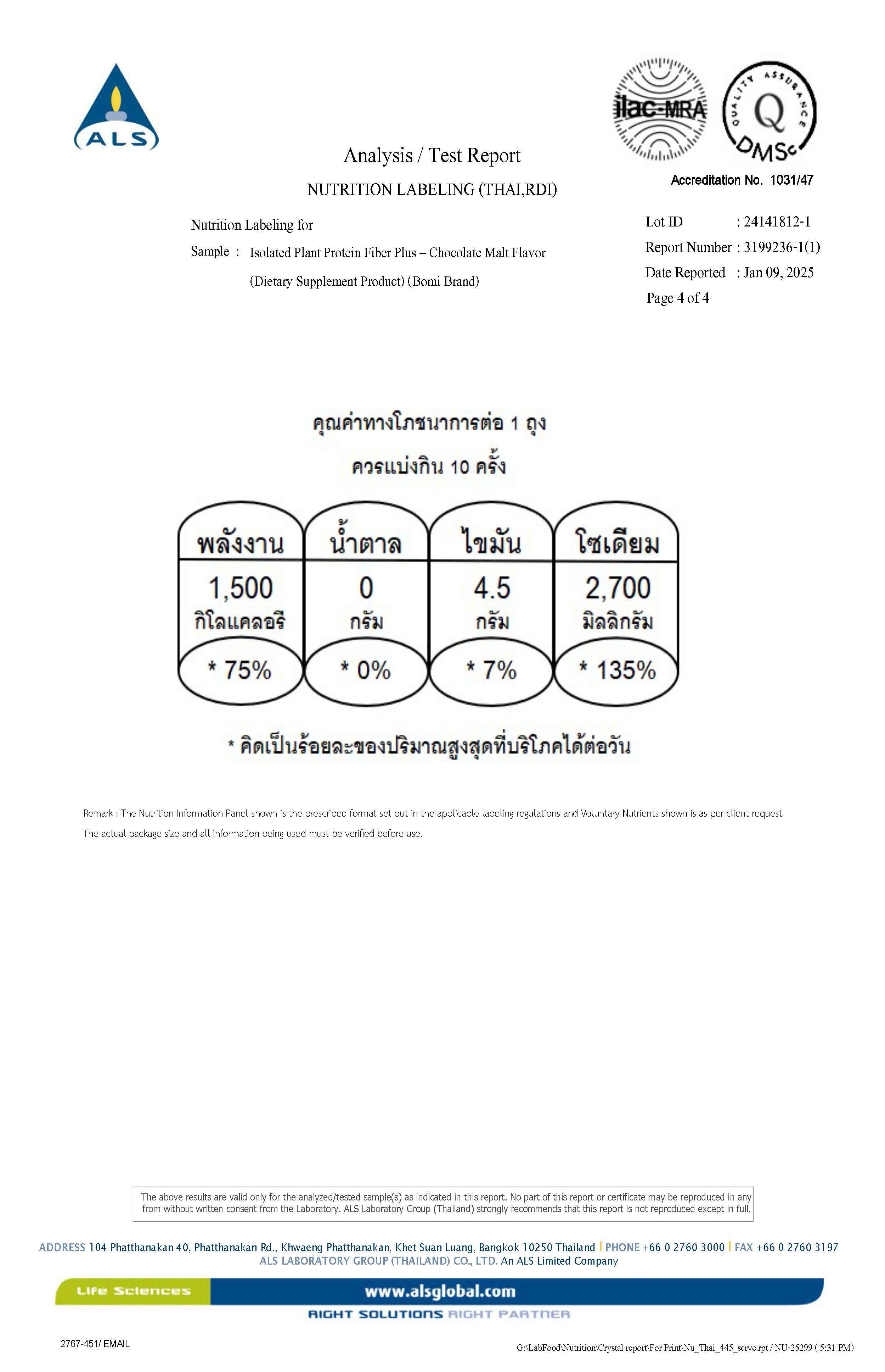 - Protein 25 กรัม/ซอง