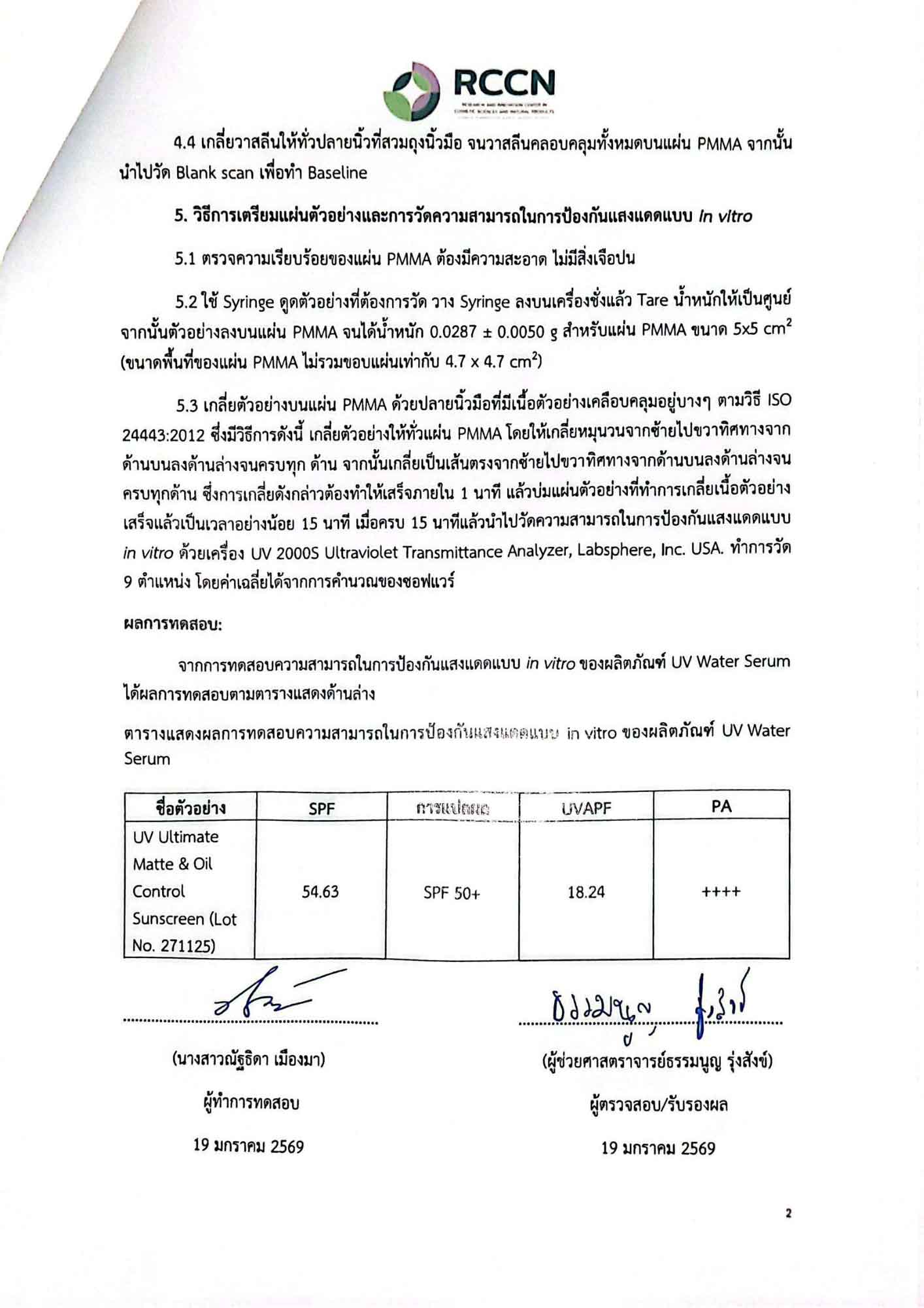 - ISO 24443 (in-vitro) : ค่า SPF เฉลี่ย 54.63 (RCCN: 19/01/26)