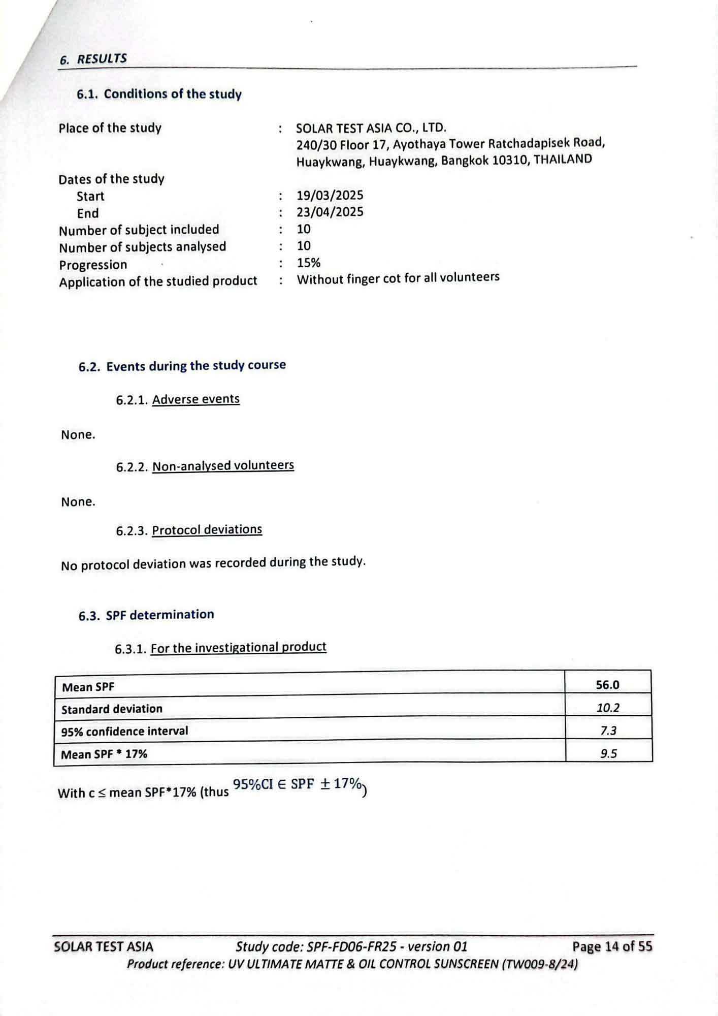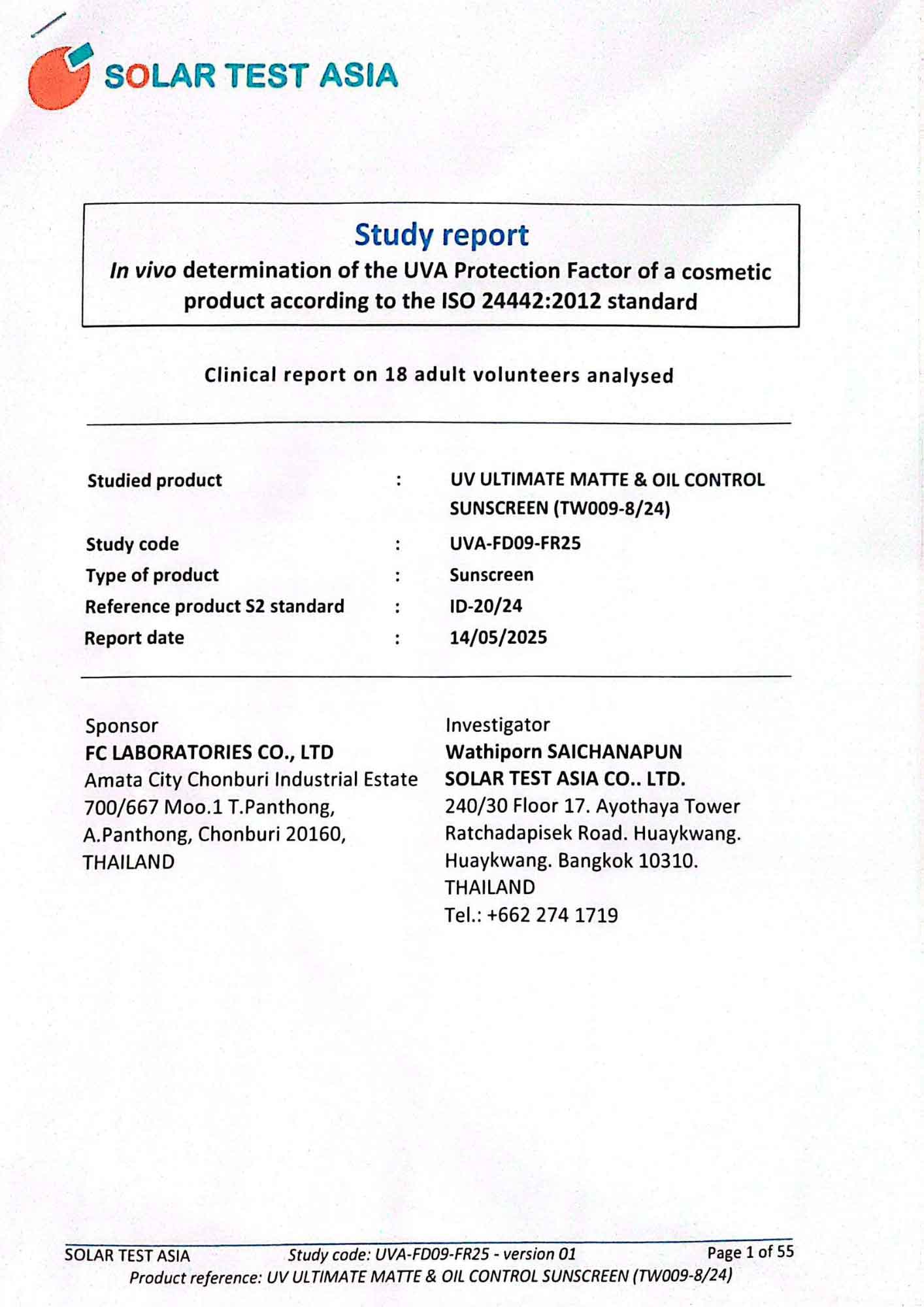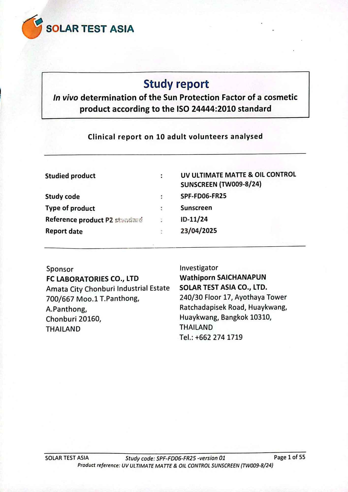 - ISO 24442 (in-vivo) : ค่า SPF เฉลี่ย 56.0 (Solar Test Asia: 23/04/25)