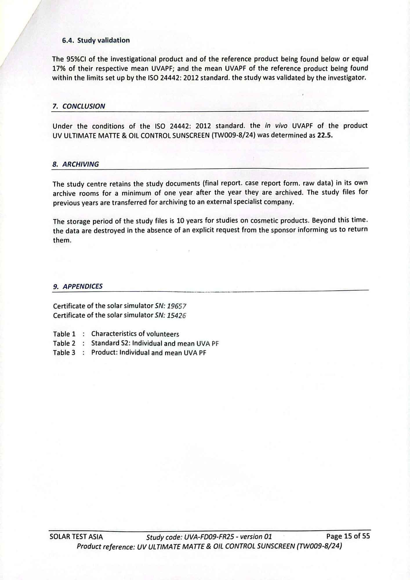 - ISO 24442 (in-vivo) : ค่า UVAPF เฉลี่ย 22.5/PA++++ (Solar Test Asia: 23/04/25)