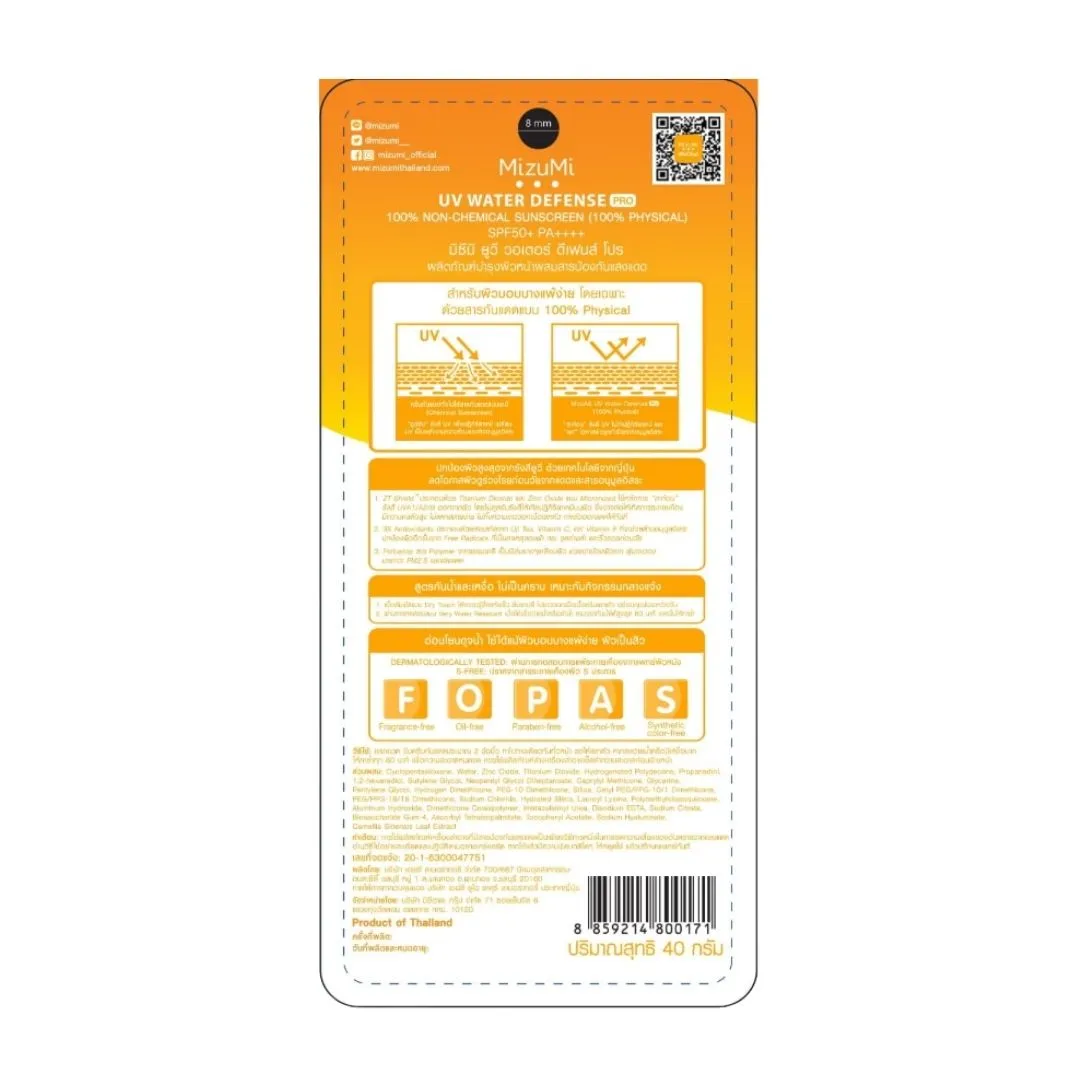- in-vitro test : ค่า UAPF เฉลี่ย 24.96 / PA++++ (RCCN มหาวิทยาลัยพะเยา 19/01/2026)