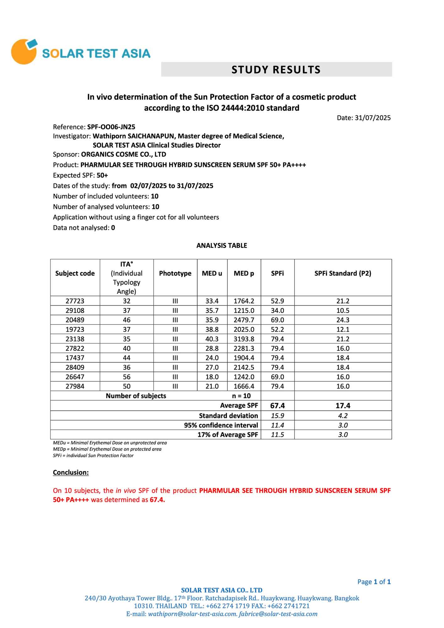 - ISO24444 : 2010 : ค่า SPF เฉลี่ย 67.4
