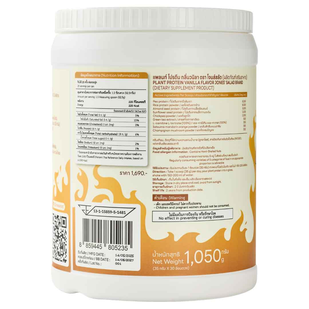 - Protein 30 กรัม/1.5 ช้อนตวง/Serving