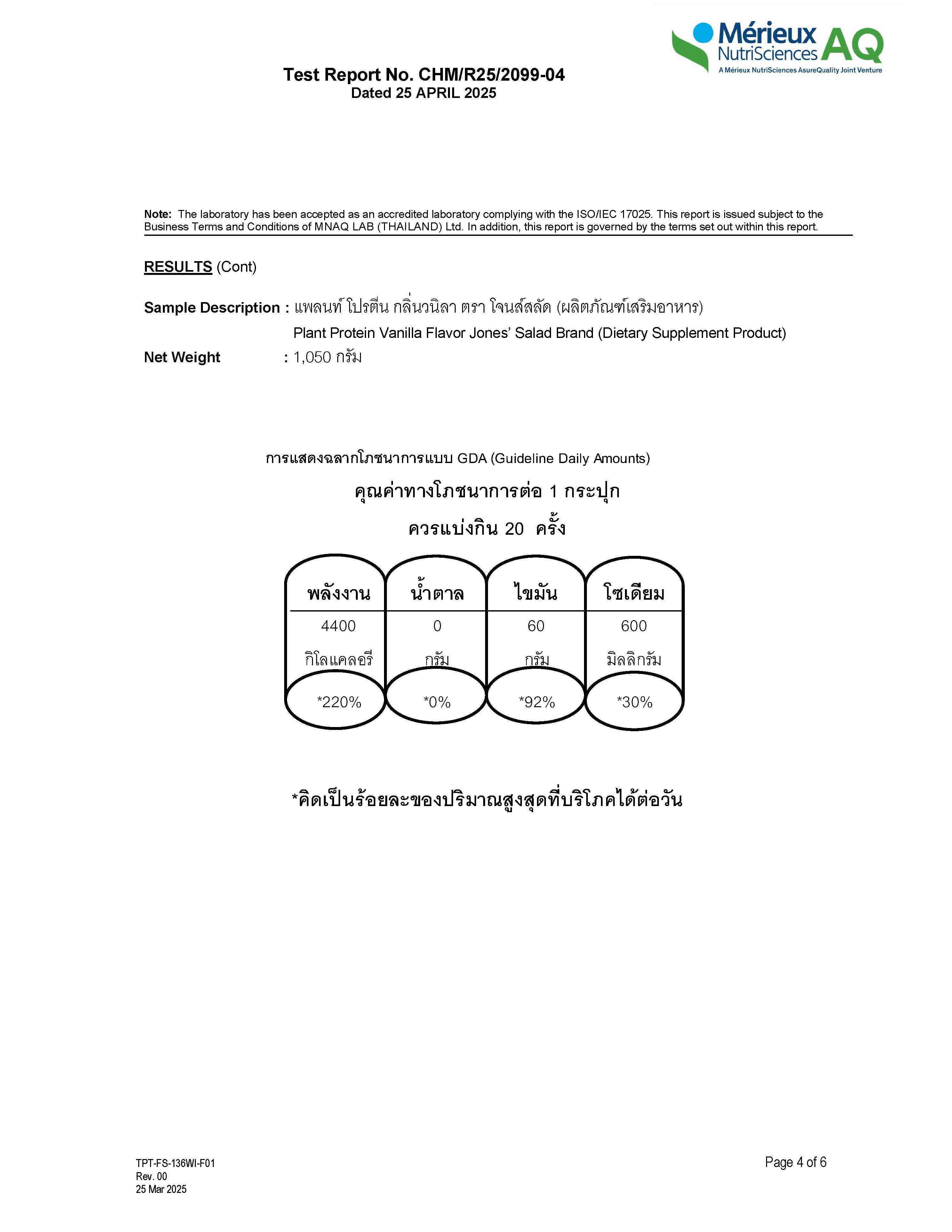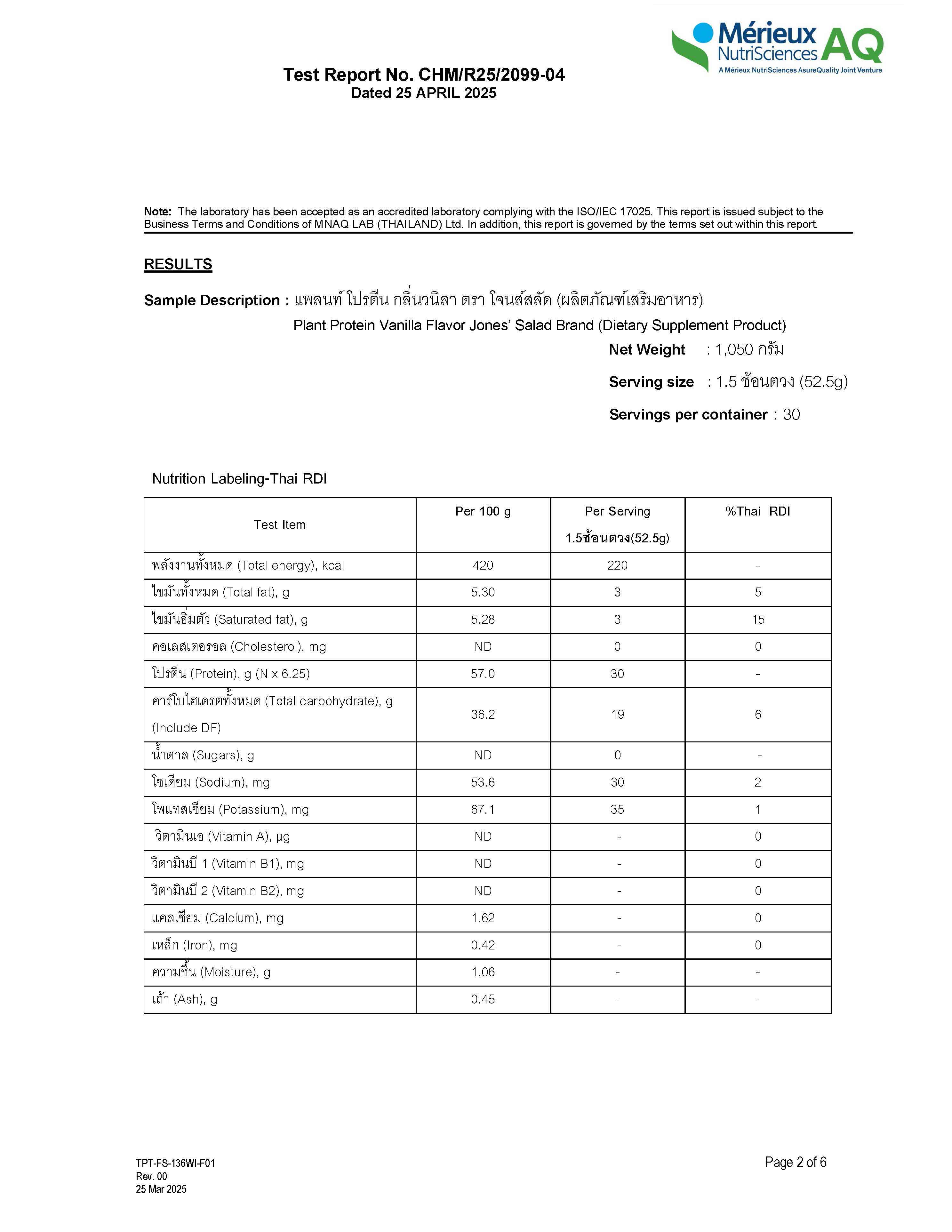 - โลหะหนัก (รอเอกสารเพิ่มเติมจากเเบรนด์)