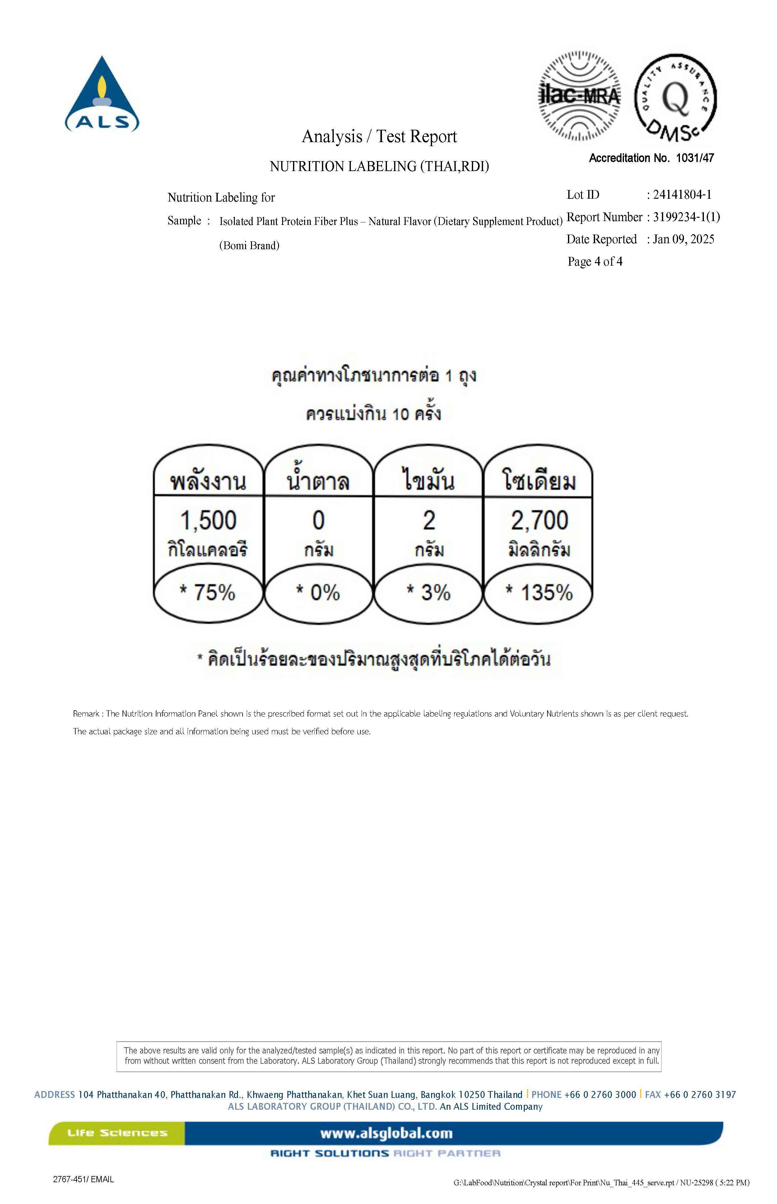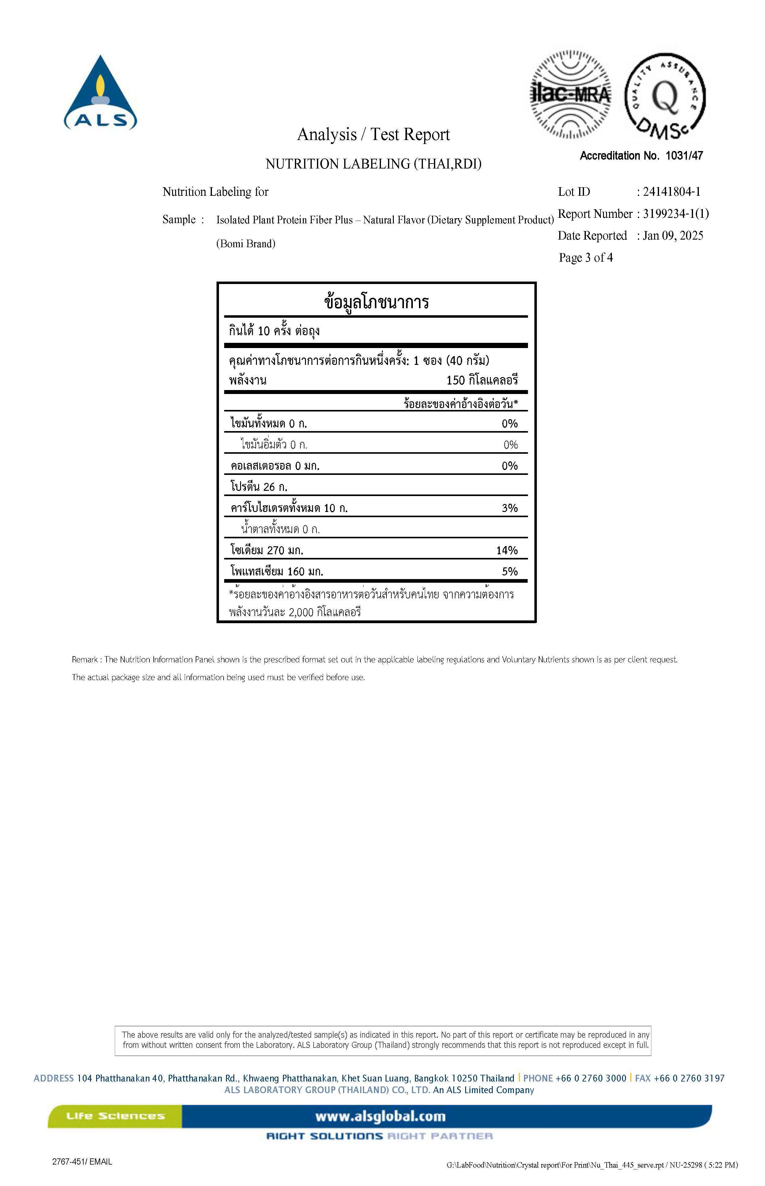 - Protein 26 กรัม/ซอง