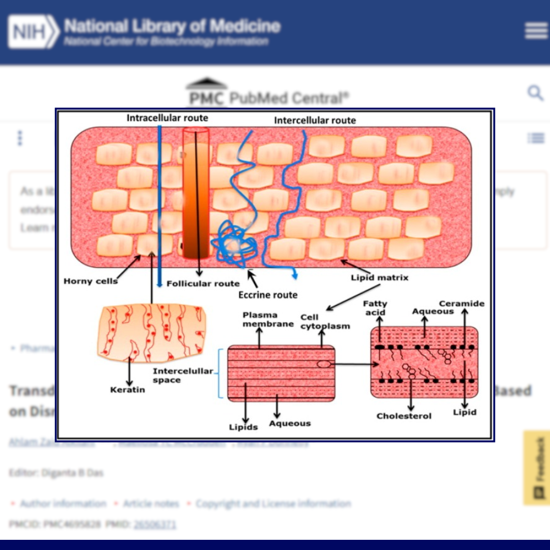 ผิวหนังคนเรามีชั้น Stratum corneum (ชั้นขี้ไคล) ที่ทำหน้าที่เป็นเกราะป้องกันหลักในการซึมผ่านของสารต่าง ๆ การดูดซึมของสารผ่านผิวหนัง มี 3 เส้นทางหลัก ได้แก่
