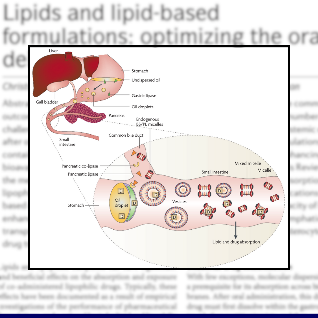 กลไกการเพิ่ม bioavailability นี้มีหลายกลไก เช่น ไขมันช่วยกระตุ้นการหลั่งเกลือน้ำดี ฟอสโฟลิพิดและคอเลสเตอรอลเกิดเป็นไมเซลล์ซึ่งช่วยเพิ่มการละลายของสารในระบบทางเดินอาหาร ไขมันช่วยทำให้สารอยู่ในระบบทางเดินอาหารนานขึ้นส่งผลให้ เพิ่มเวลาที่สารถูกดูดซึม นอกจากนี้พบว่าไขมันและผลผลิตที่ได้จากการย่อย รวมทั้งสารลดแรงตึงผิว มีคุณสมบัติช่วยเพิ่มการซึมผ่านของสารและยับยั้งการทำงานของ P-glycoprotein ทำให้การขจัดสารออกจากลำไส้เล็กลดลง จึงทำให้ถูกดูดซึมได้มากขึ้น