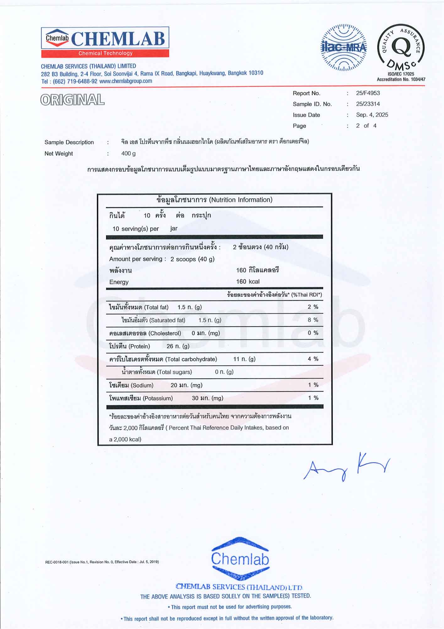 - Protein 26 กรัม/2 ช้อน