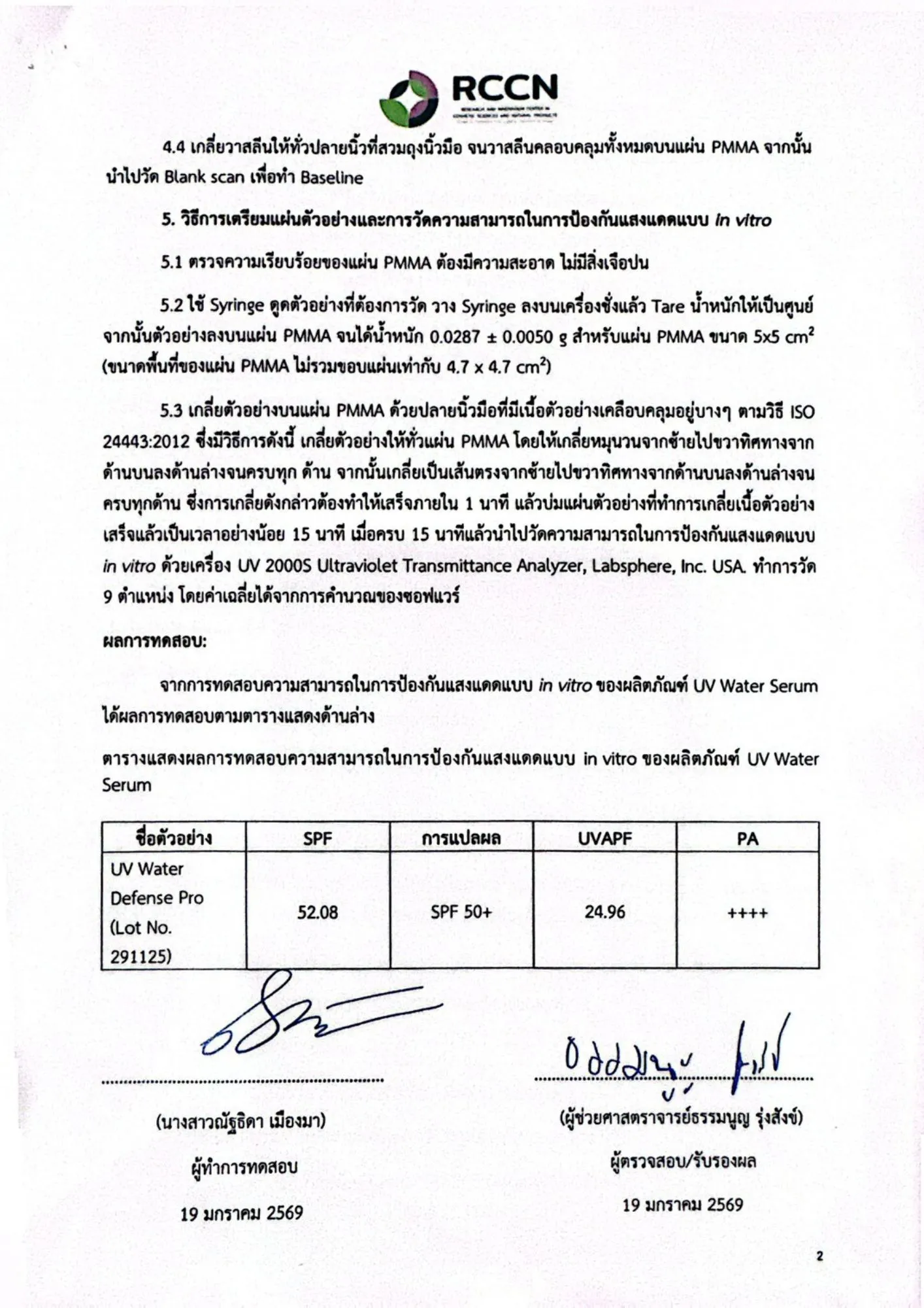 - in-vitro test : ค่า SPF เฉลี่ย 52.8 (RCCN มหาวิทยาลัยพะเยา 19/01/2026)